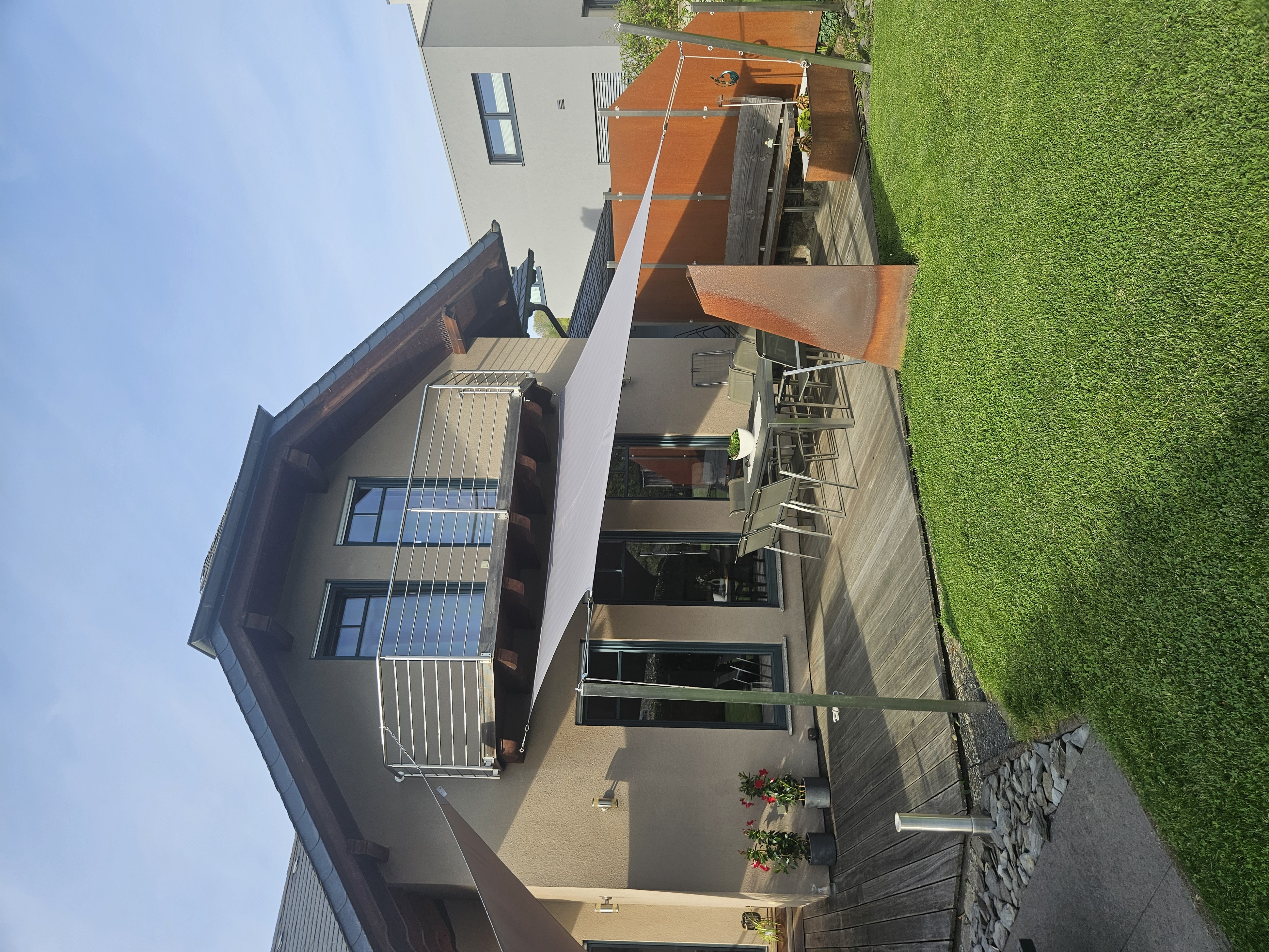 Avis vérifiéDas 3 x 5 m große Sonnensegel wurde perfekt verpackt in der angekündigten Zeit geliefert. Es war zusätzlich in einem passenden stabilen Sack mit extra Dreiecktaschen für die Edelstahlecken. Diese sind ohne jegliche scharfe Kanten sauber gearbeitet. Bei der Installation habe ich festgestellt, dass zum richtigen Spannen des Segels 1 Karabinerhaken und drei Seil-Spannsysteme sinnvoll/nötig sind. Nach dem Abnehmen des Segels für die kalte Jahreszeit läßt sich das Segel inklusive Zubehöt wieder gut in dem Sack verstauen. Ich habe anschließend ein weiteres Segel für eine unmittelbar neben der ersten Terrasse gelegene Terrasse bestellt und dabei versehentlich eine etwas andere Farbe gewählt. Bereits am Folgetag wurde ich angeschrieben und mit mir wurde sehr konstruktiv und absolut hilfsbereit besprochen, wie ich am besten ein einheitliches Bild bekomme und daraufhin umgehend seitens des Herstellers die Farbe angepasst. Genauere Informationen führten dann auch noch dazu, dass der Ablaufpunkt des Segels angepasst wurde, da ich bei der Bestellung in diesem Punkt unsicher war. Für diesen perfekten Service würde ich gerne nochmal 5 Extrapunkt geben. Lire plus Lire moins