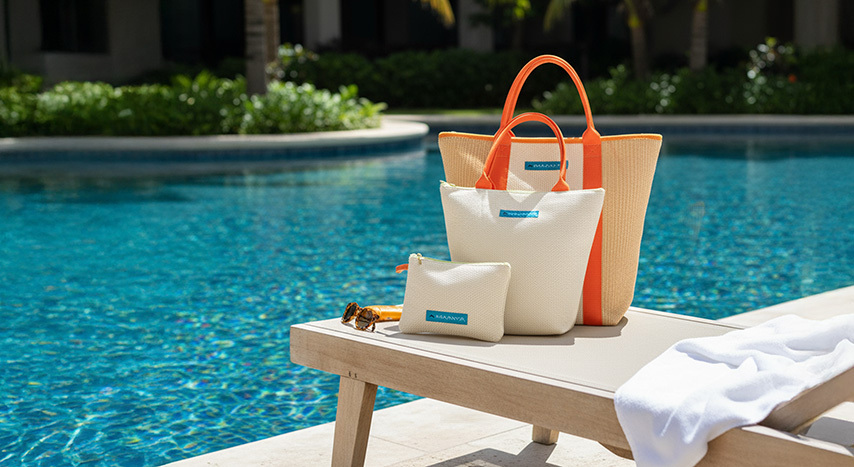 - Meshnet 320g, un polyéthylène vierge tressé extrêmement résistant que nous utilisons pour la production de nos voiles Saill et SolariA fabriquées en Italie. Sélectionné pour sa parfaite protection contre la chaleur et sa résistance au vent, il devient maintenant une pochette pratique, ou un sac, pour contenir tous vos objets soit à la plage soit en ville.