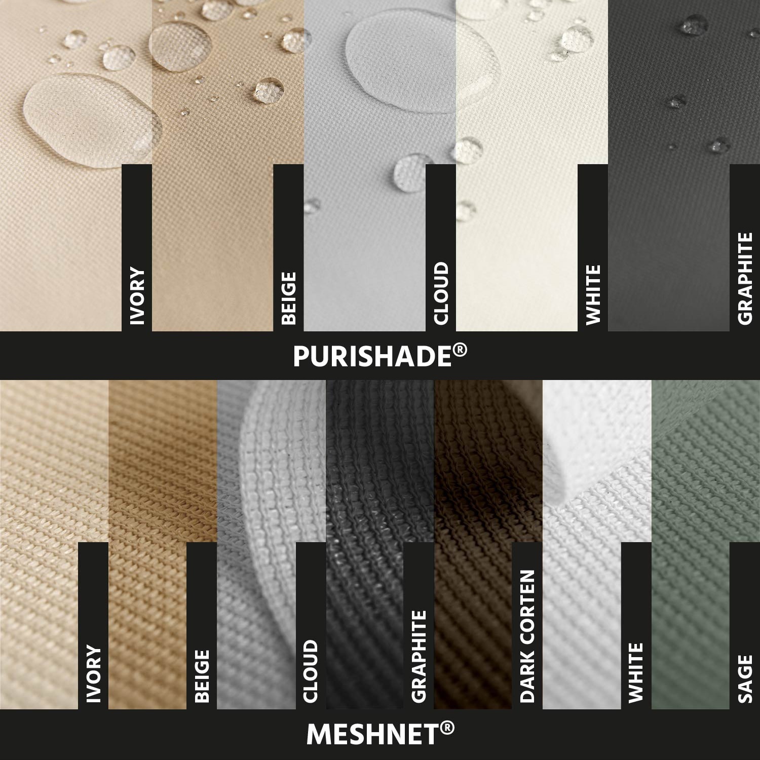 | Poliestere | Purishade® | HDPE vergine | Meshnet® | Braidd5® | Clear® | |