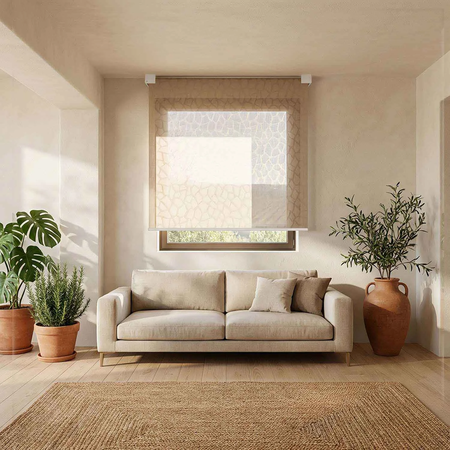 Les tissus des stores intérieurs ne se choisissent pas par la couleur : ils se choisissent en fonction de la quantité de lumière que vous souhaitez laisser entrer. La même pièce, avec le même mobilier, change complètement selon le tissu.