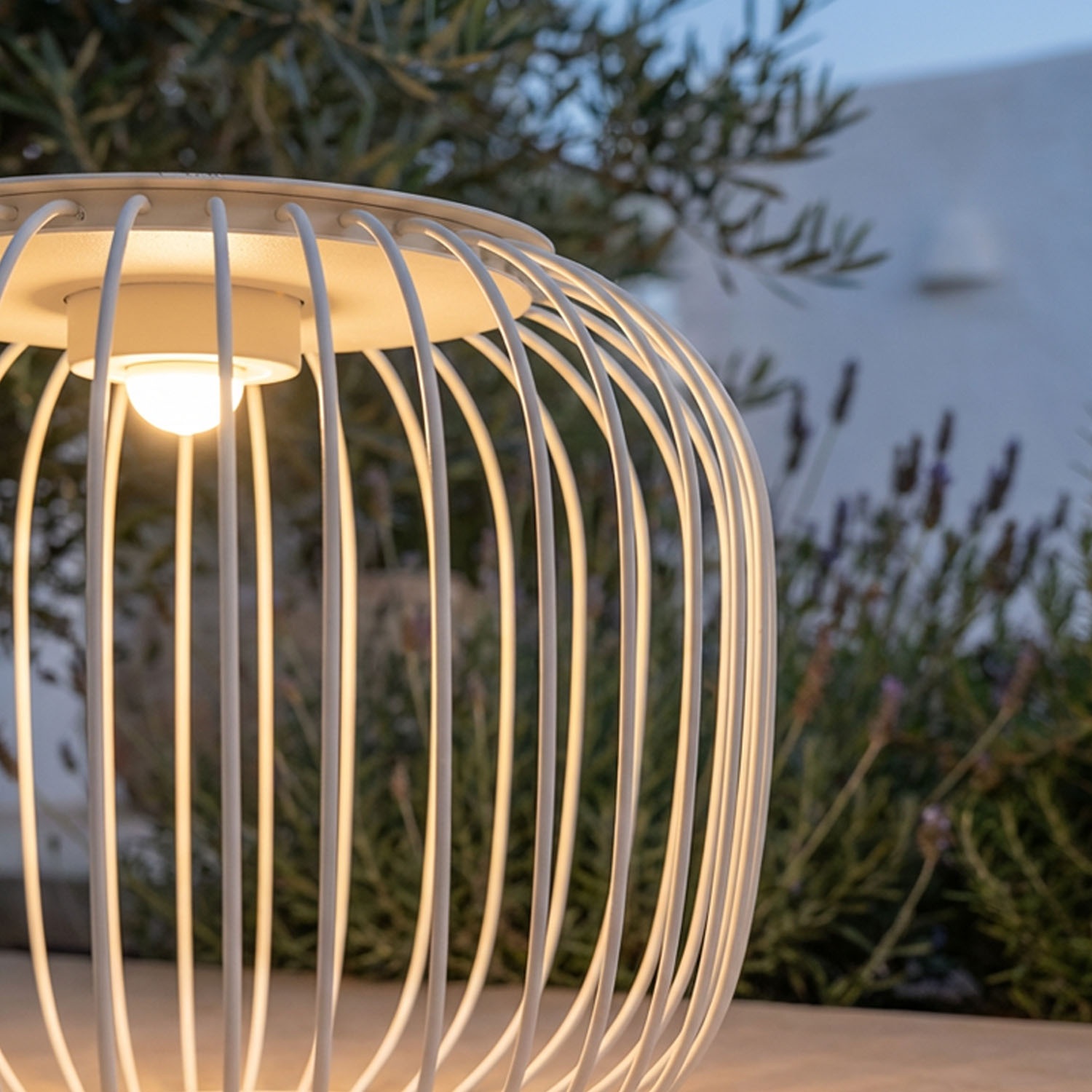 Le capteur crépusculaire allume Spheria au coucher du soleil, sans intervention. La télécommande offre le contrôle de la luminosité et du minuteur programmable (3H/5H/8H).