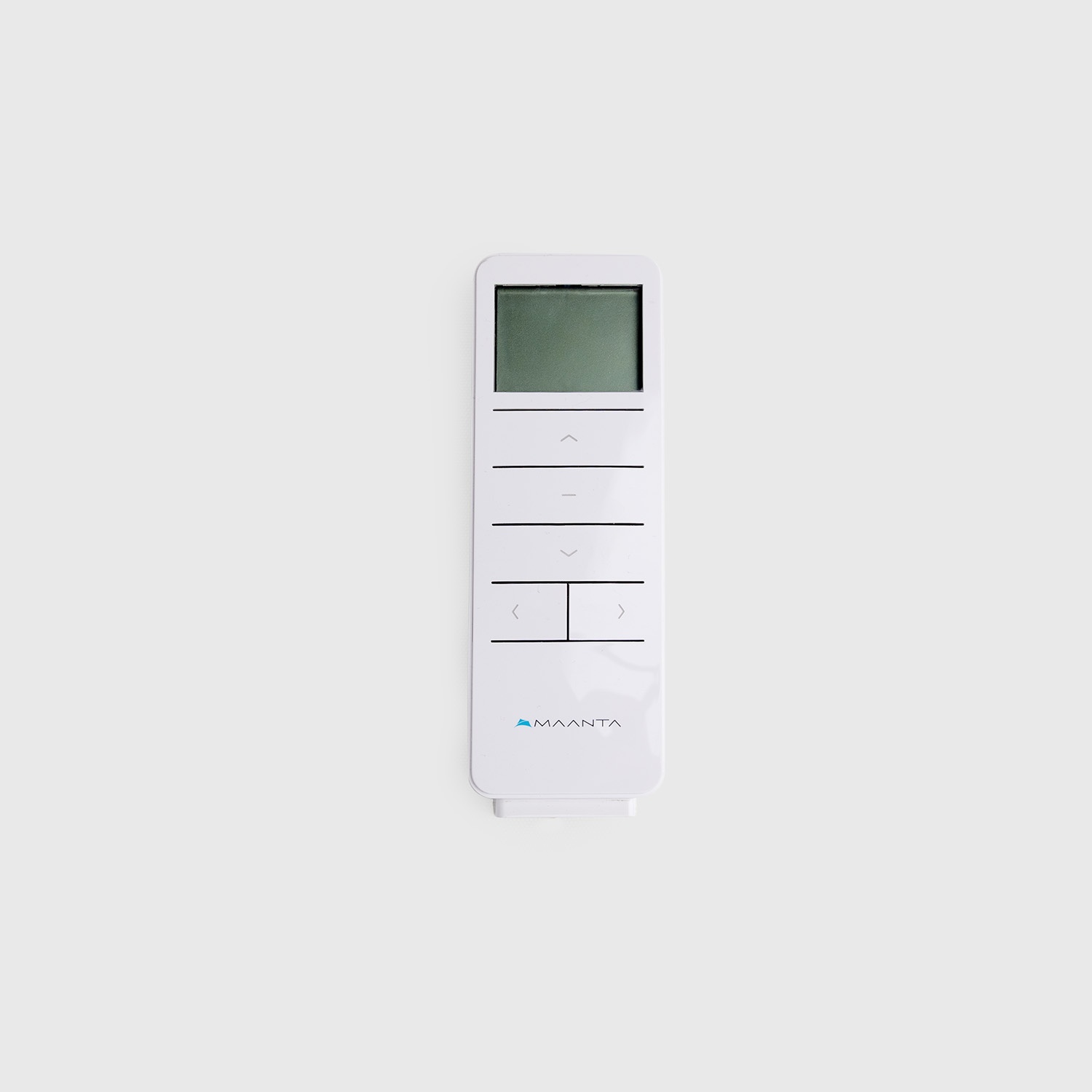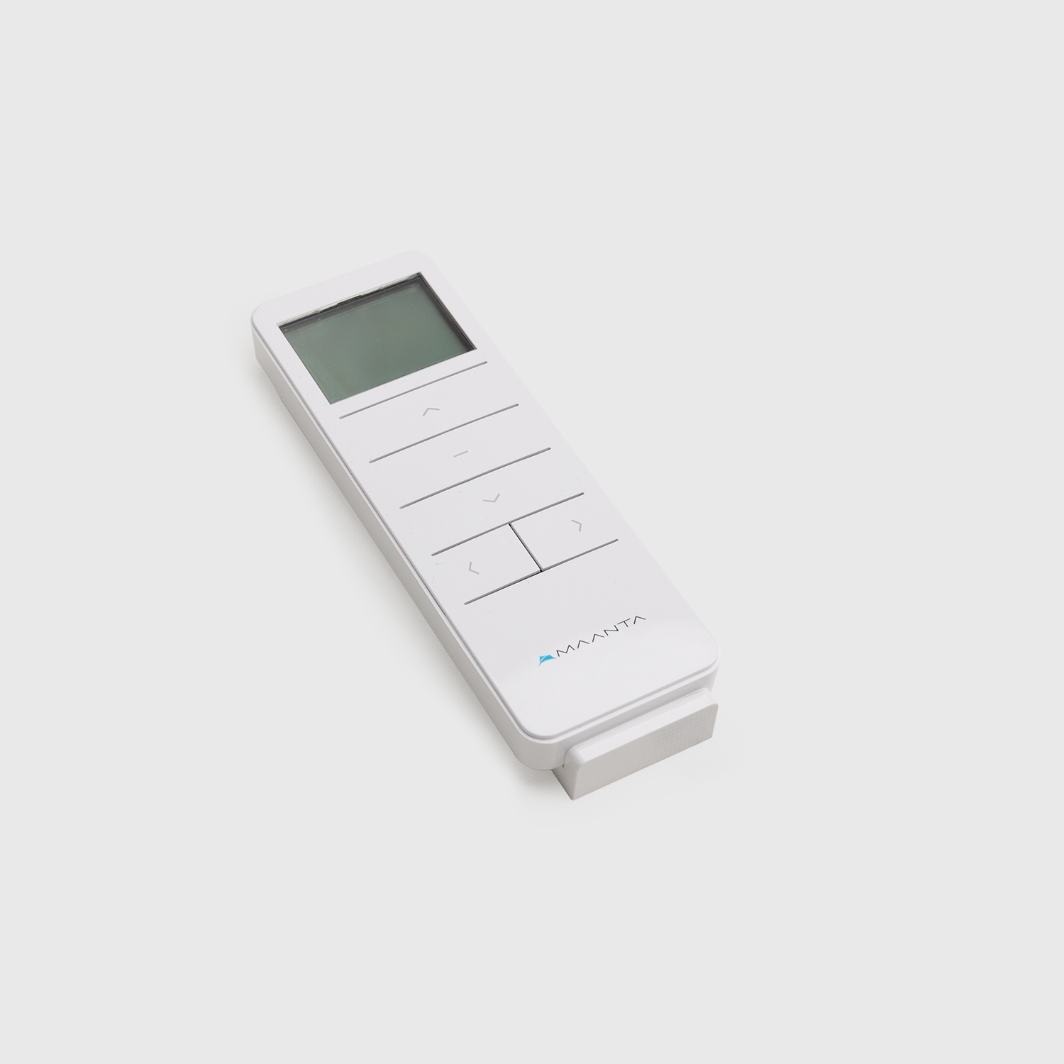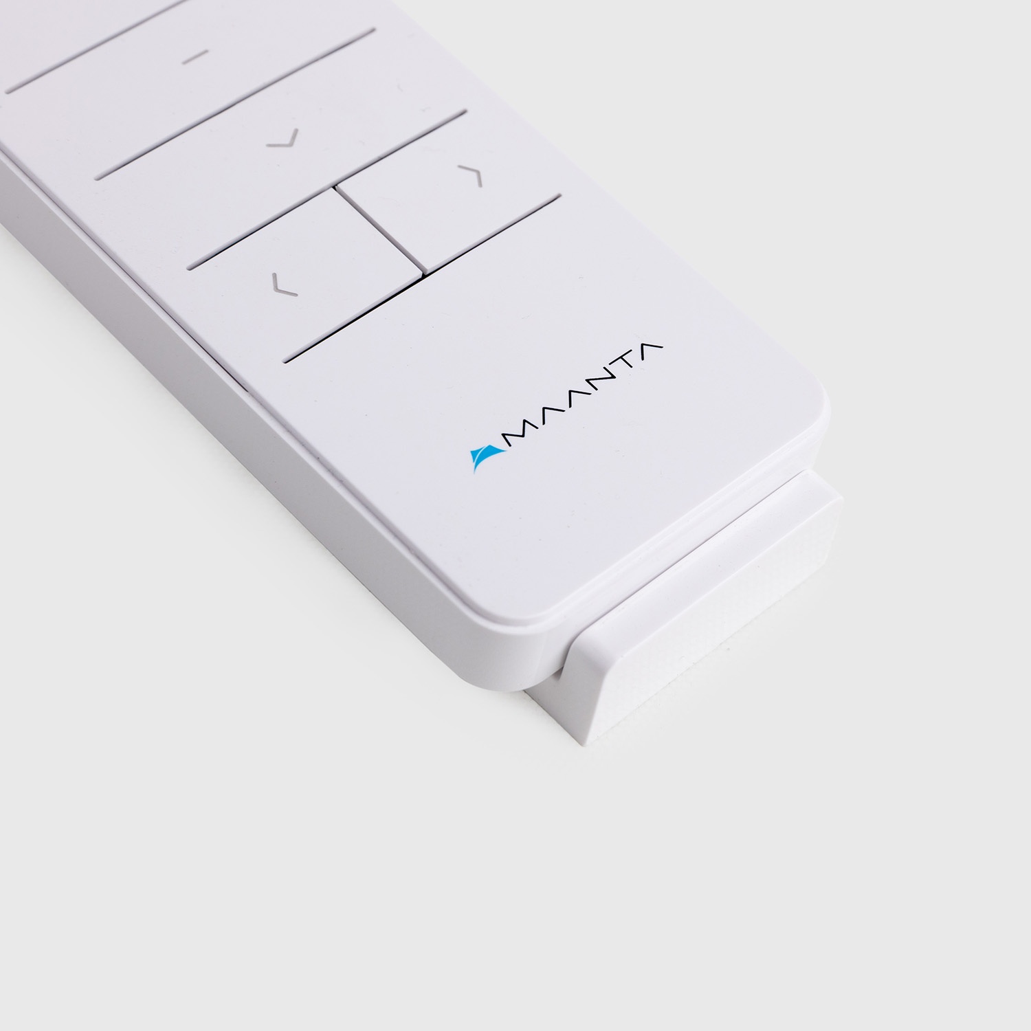 Télécommande pour stores verticaux Maanta qui permet de contrôler la montée, la descente et l'arrêt à mi-hauteur.