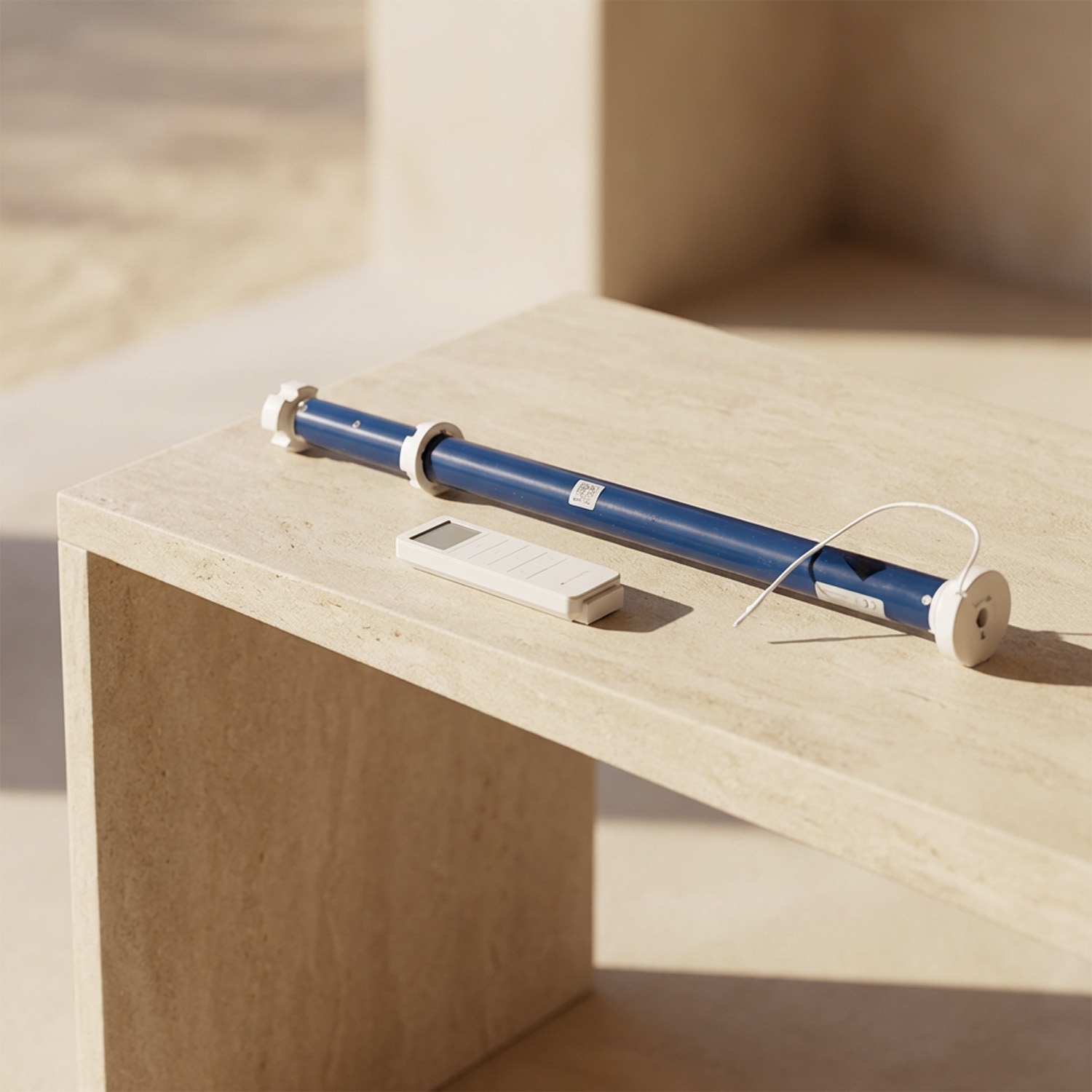Moteur tubulaire rechargeable avec batterie au lithium intégrée. Il s’insère directement dans le rouleau d’enroulement du store Recta ou Kyma, côté droit ou gauche au choix.