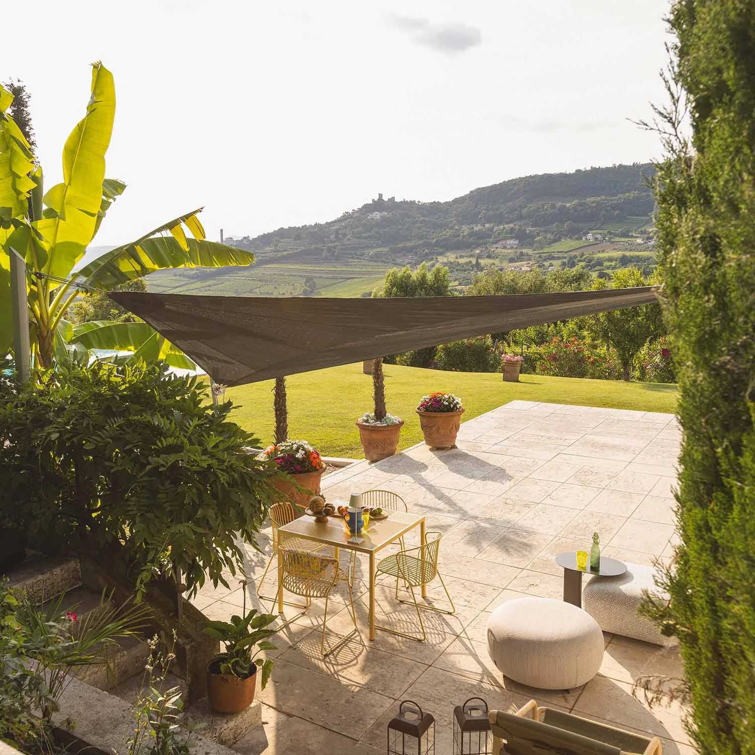 La voile respirante crée une zone d'ombre aérée, à l'abri des rayons UV. En même temps, elle protège de la grêle et des rafales de vent.