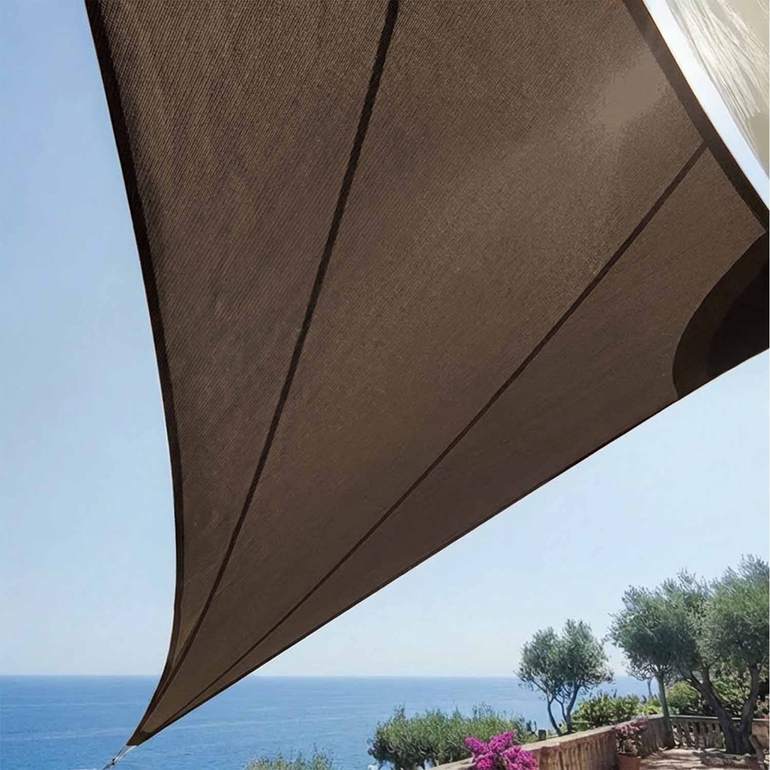 Solaria Ajourée est une voile d'ombrage avec coupe radiale fabriquée en tissu Meshnet® HDPE 320 respirant qui protège contre la chaleur intense et la grêle, ainsi que contre les rayons UV et le vent fort.