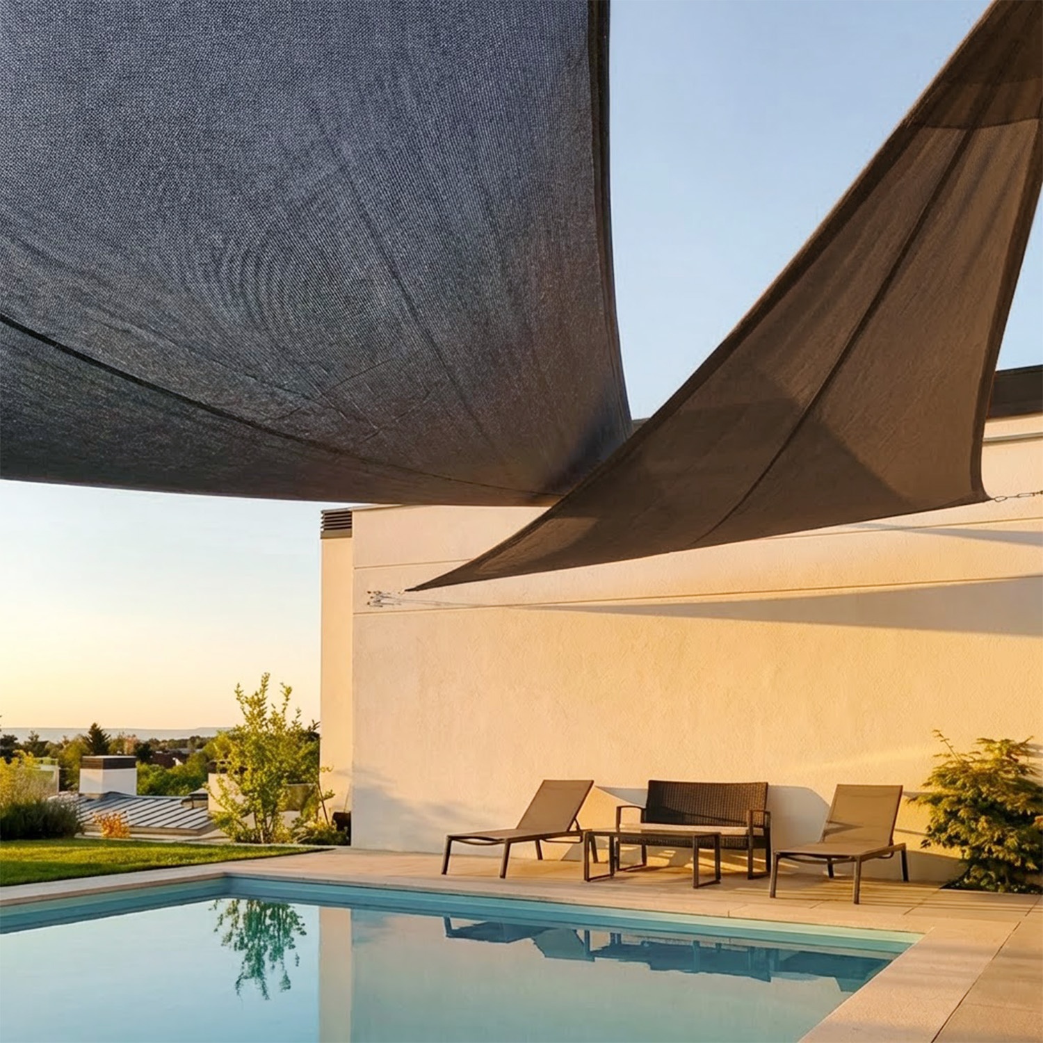 La voile respirante crée une zone d'ombre aérée, à l'abri des rayons UV. En même temps, elle protège de la grêle et des rafales de vent.