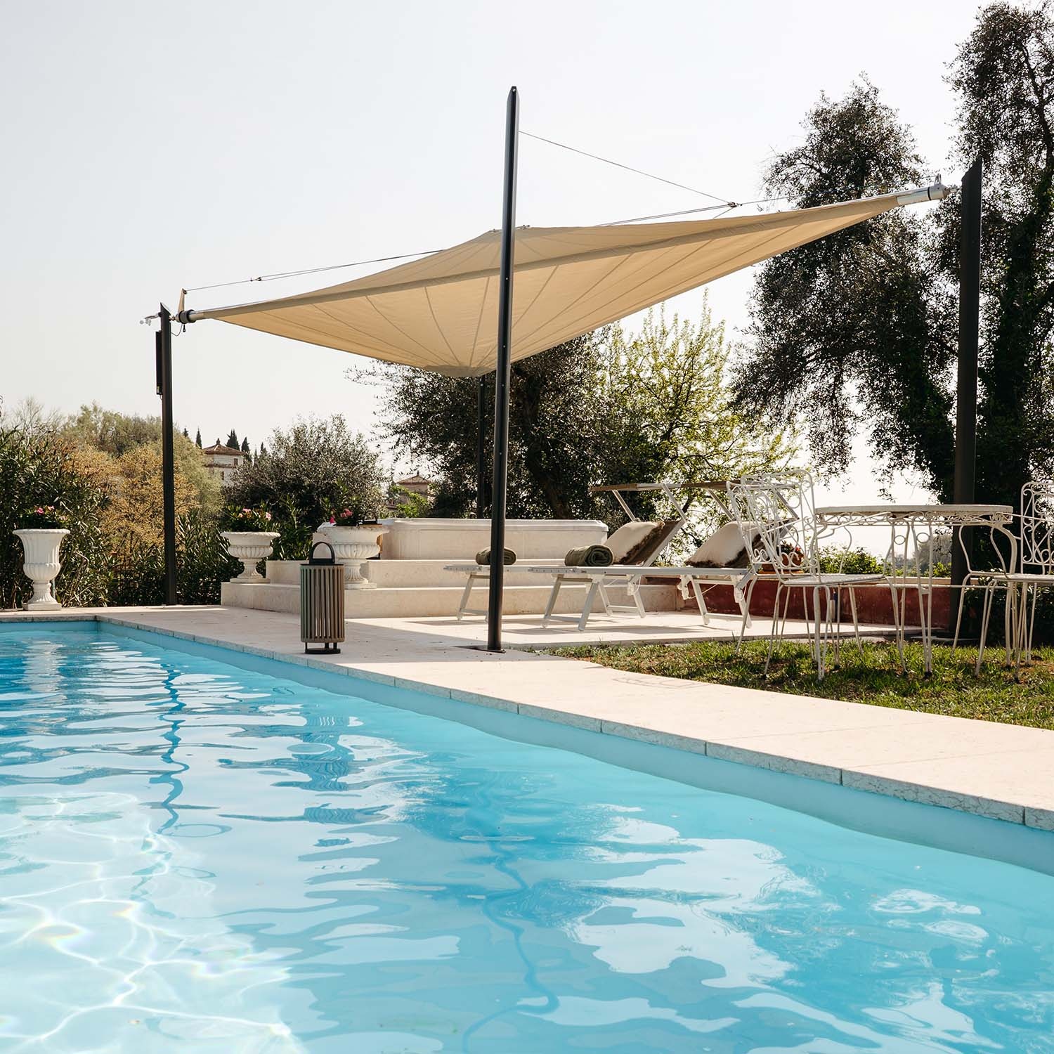 Vous pouvez laisser votre voile d’ombrage motorisée Zefira installée toute l’année. L’acier inoxydable et le tissu Purishade® résistent à la pluie, au gel et aux intempéries. Maanta conçoit des voiles d’ombrage automatiques pensées pour durer. Le démontage saisonnier est conseillé mais non obligatoire.