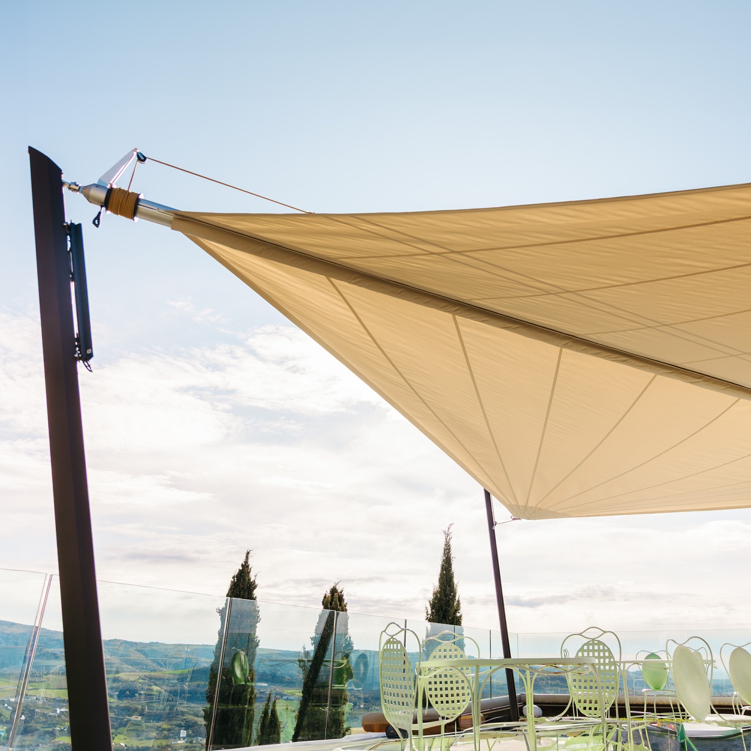 En période d’inutilisation, enroulez la voile pour éviter l’accumulation de feuilles ou de neige. Pour une protection renforcée, utilisez la Zefira Winter Cover.